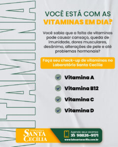 Avaliação completa de Vitamina A, B12, C e D, essencial para imunidade, energia, disposição, memória e metabolismo.